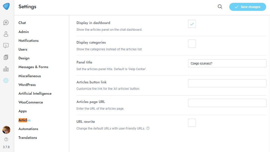 Jeśli masz listę materiałów, które mogą stanowić odpowiedź na problemy klienta, możesz je wyświetlić w czacie jako propozycję do zapoznania się. Artykuły będą widoczne nie tylko jako lista, ale również możesz podać link do strony ze wszystkimi artykułami.