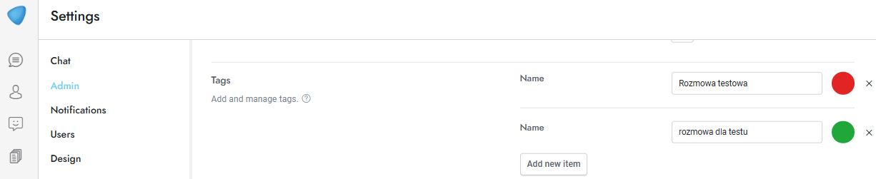 Możesz również oznaczać rozmowy wcześniej zdefiniowanymi tagami dla łatwiejszego wyszukiwania ich w późniejszym czasie.