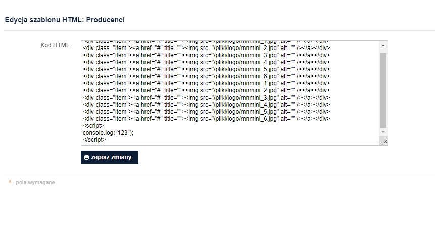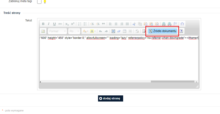4. W treści strony należy kliknąć na źródło dokumentu i wkleić swój kod