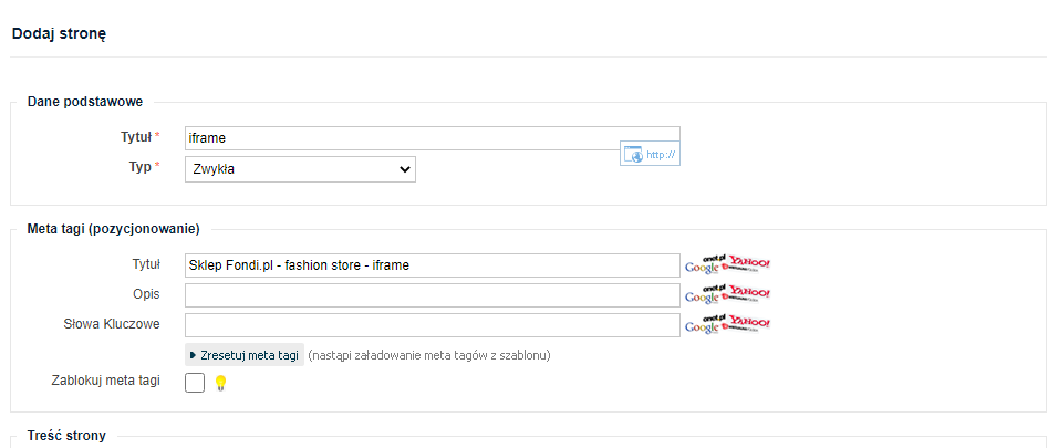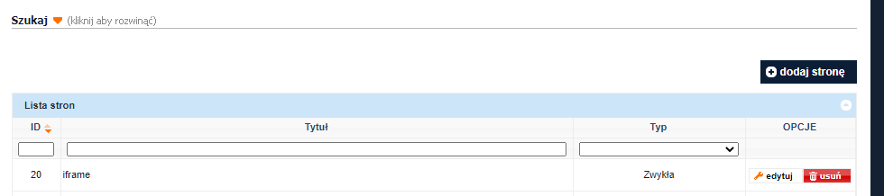 5. Aby po dodaniu strony wyświetlić ją należy ja wybrać i przycisk edytuj przy niej: