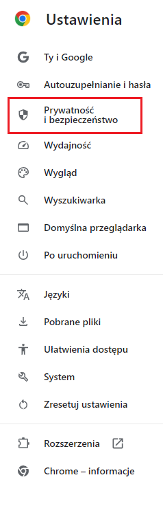3. Znajdź opcję Prywatność i bezpieczeństwo