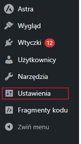 W panelu administracyjnym, w pasku bocznym narzędzi, znajdź zakładkę „Ustawienia” i najedź na nią kursorem.