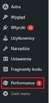 Po zalogowaniu, na pasku bocznym znajdź zakładkę ‘Performance’. Jest to sekcja odpowiedzialna za zarządzanie ustawieniami wydajności strony.