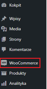 Po zalogowaniu, na bocznym pasku nawigacyjnym, znajdź zakładkę „WooCommerce” i najedź na nią kursorem, aby rozwinąć dostępne opcje.