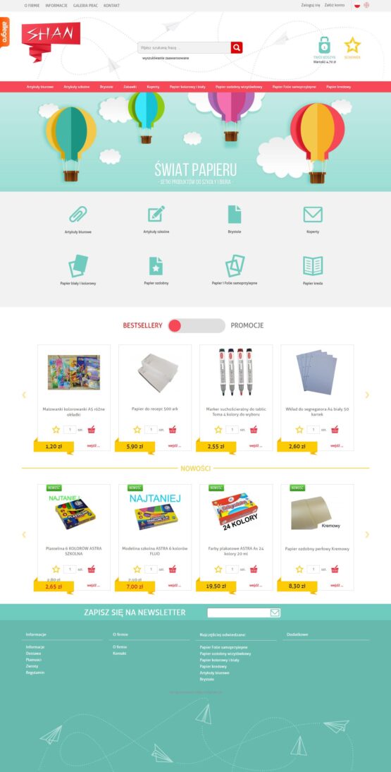 Firma SHAN rozpoczęła działalność w 1993 roku, prowadząc produkcję artykułów szkolno – biurowych. Wykonaliśmy dla niej responsywny sklep internetowy, dostosowujący swój wygląd i układ elementów do mniejszych ekranów urządzeń mobilnych.