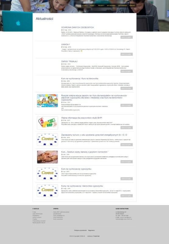 „CONSUS” Niepubliczna Placówka Kształcenia i Doskonalenia Zawodowego, Nauka Języków Obcych działa na rynku szkoleniowym od 2000 roku. Na zlecenie Consus wykonaliśmy dla nich stronę internetową oraz przeprowadziliśmy kampanię reklamowa Adwords na terenie Radomia i okolic