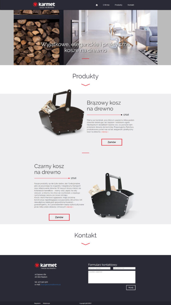 Firma Karmet zajmuje się ręczną produkcją eleganckich i funkcjonalnych koszy na drewno z wykorzystaniem ekologicznych materiałów. Na zlecenie firmy Karmet wykonaliśmy stronę – wizytówkę dostosowaną do urządzeń o ekranach różnej wielkości. Strona skupia się na prezentacji produktu i umożliwia kontakt z producentem koszy.