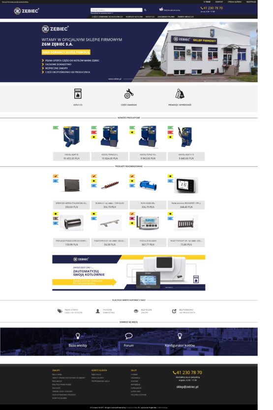 Zakłady Górniczo-Metalowe „Zębiec” w Zębcu Spółka Akcyjna to firma oferująca wysoko wydajne kotły c.o. do ogrzewania domów, pomieszczeń gospodarczych, sklepów i pawilonów handlowych. Dodatkowo spółka Zębiec zajmuje się również produkcją i dystrybucją niezbędnych produktów dla budownictwa, wiertnictwa oraz odlewnictwa. Na zlecenie spółki wykonaliśmy sklep internetowy umożliwiający prezentację produktów online